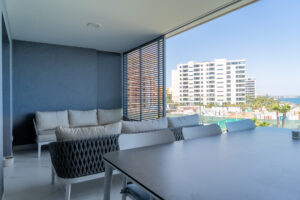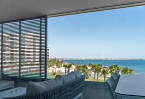 The apartment is equipped with a washing machine, air conditioning and underfloor heating in the bathrooms. An indoor parking space belongs to the apartment. The large common area offers an infinity pool, heated swimming pool, children’s pool, playground and much more.